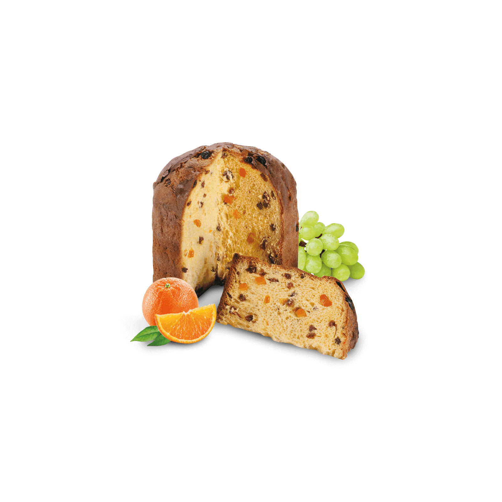 Składniki : Mąka pszenna (PSZENICA) , rodzynki sułtańskie (19%) masło (MLEKO) cukier, świeże żółtka JAJ, drożdże, kandyzowana skórka z pomarańczy(6%) [skórki pomarańczy(53) syrop glukozowo - fruktozowy, cukier, regulator kwasowości: kwasek cytrynowy] ,emulgator: mono i disacharydy kwasów tłuszczowych pochodzenia roślinnego, syrop cukru inwertowanego, sól, naturalny aromat.