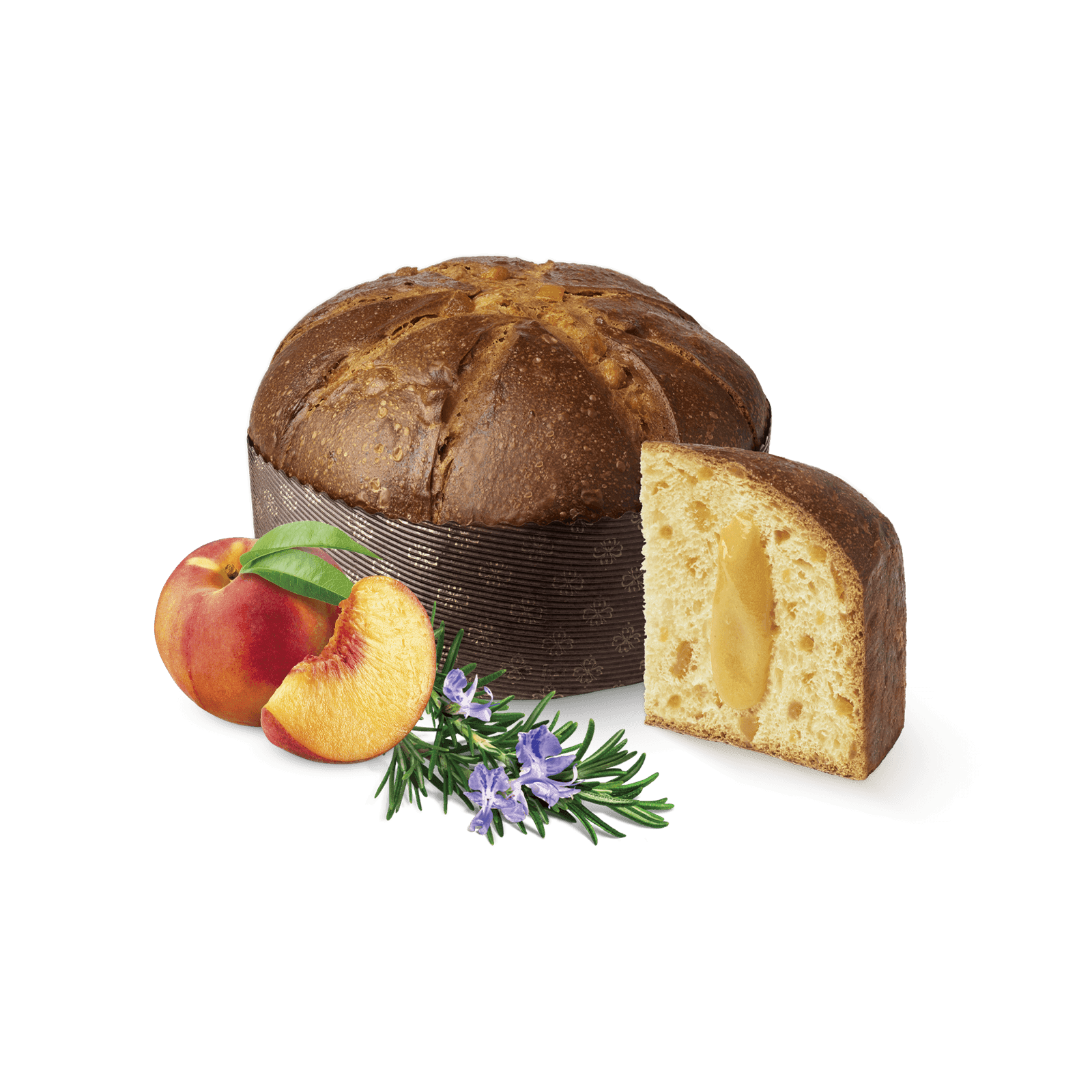 Panettone z kremem brzoskwiniowym, kandyzowaną brzoskwinią i rozmarynem to świetna propozycja dla fanów niebanalnych połączeń smakowych.